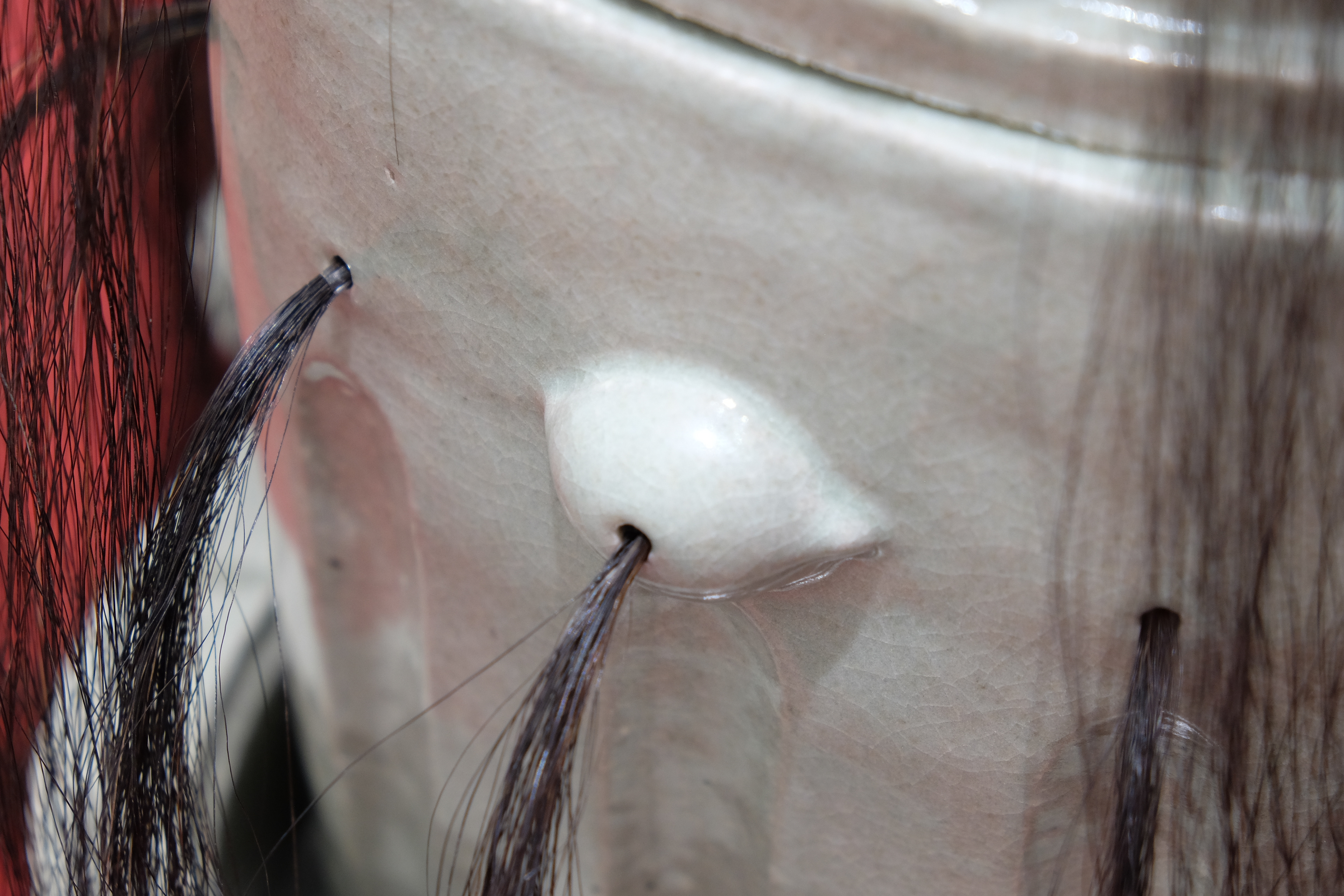 2024 Ceramics, horsehair, velvet, smoked oak and video
